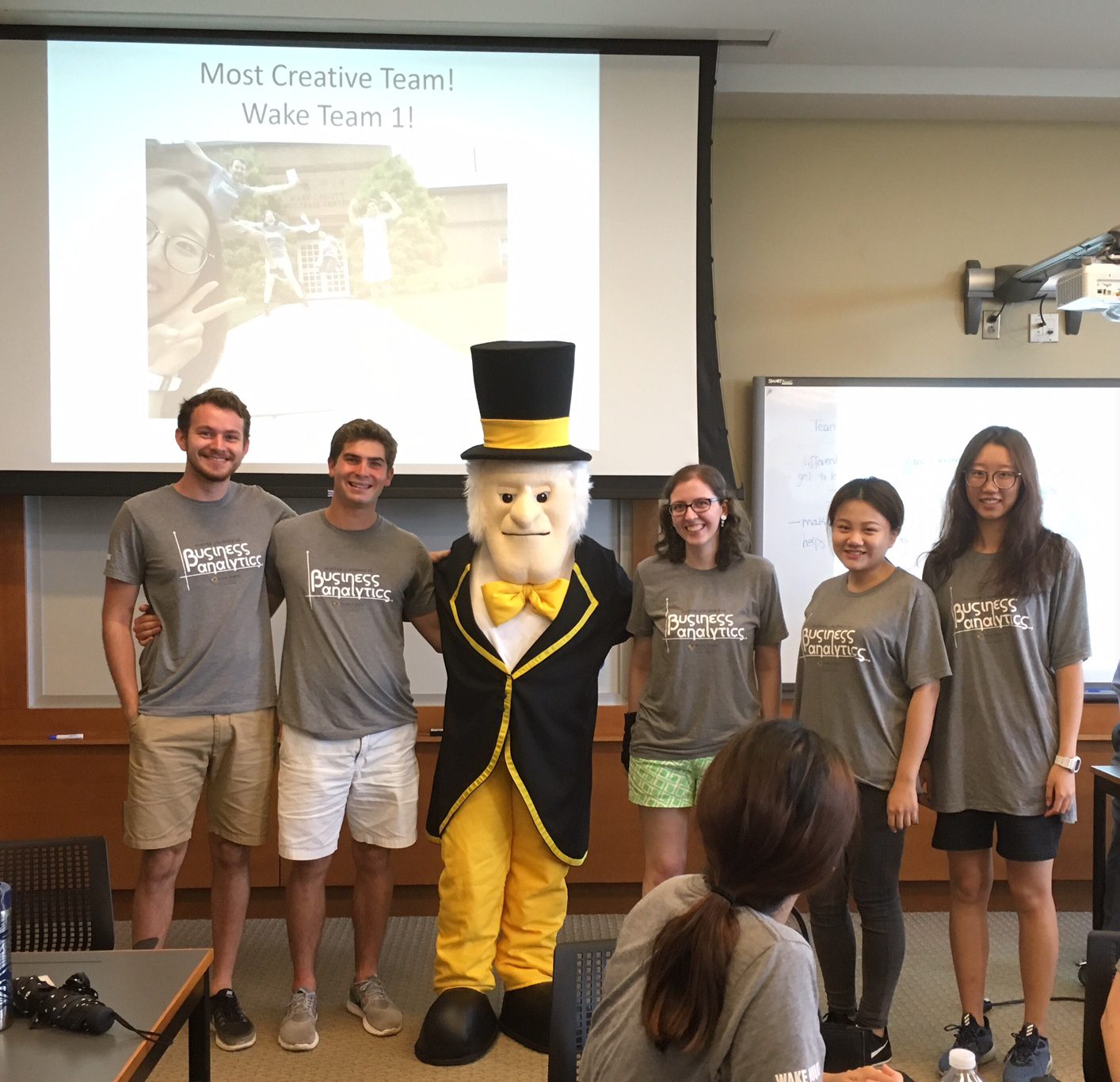 On Monday, August 14, 2017, the Allegacy Center for Leadership and Character hosted the 2018 MSBA class for leadership and team building activities including the Amazing Race. In this activity, teams work together to perform tasks at various checkpoints across campus under time constraints to learn more about communicating and making effective leadership decisions under pressure. Awards were given for the team finishing the course the fastest and the team with the most creative approach to photographing their checkpoints. (See photos in the gallery below.)